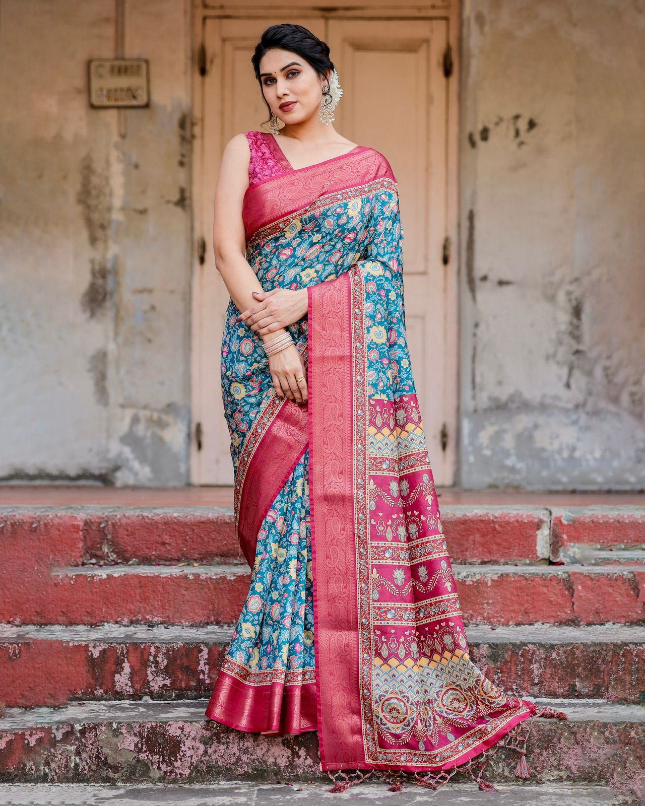 From traditional designs to contemporary looks, explore unique pieces such as teal blue silk blend floral saree designer and soft silk blue saree with blouse piece that bring out timeless beauty and sophistication.